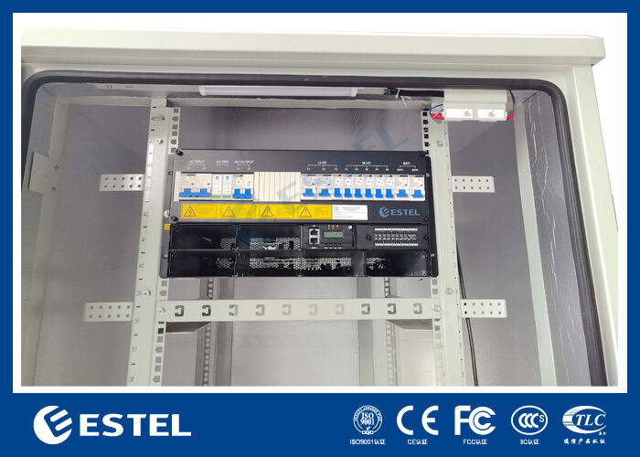 En la puerta del gabinete se instalan un aire acondicionado y dos ventiladores de emergencia, para mantener una temperatura adecuada en el interior del recinto y, por lo tanto, prolongar la vida útil del equipo de telecomunicaciones.ESTEL®s ofrece muchos modelos de aire acondicionado para que los clientes elijanEl aire acondicionado también proporciona una interfaz de comunicación para la conexión al sistema de monitorización superior del cliente.