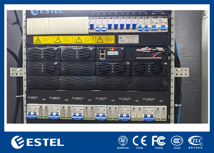 Diseñado para infraestructuras de telecomunicaciones, centros de datos medianos y grandes y condiciones ambientales exigentes.el sistema de rectificador de potencia híbrido de 12 U proporciona una distribución de energía AC y DC estable. Acepta dos entradas ¥220V CA y fotovoltaica (PV) ¥ y produce una salida de CC regulada con precisión ajustable de ¥43V a ¥58V (normalmente ¥53.5V).el sistema proporciona una salida de 110 V CA a 16 A, con protección contra sobretensiones de clase C. Con una potencia máxima de 30 kW y eficiencias de conversión superiores al 96% en la mayor parte de su rango de carga,la unidad reduce sustancialmente el consumo de energía y las demandas de refrigeración asociadas.